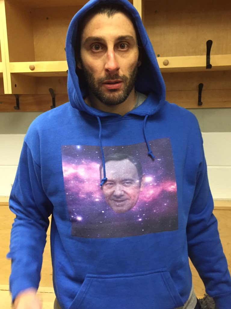 Sure! Why not. A Kevin Spacey hoodie good luck charm. Makes perfect sense. That explains it.