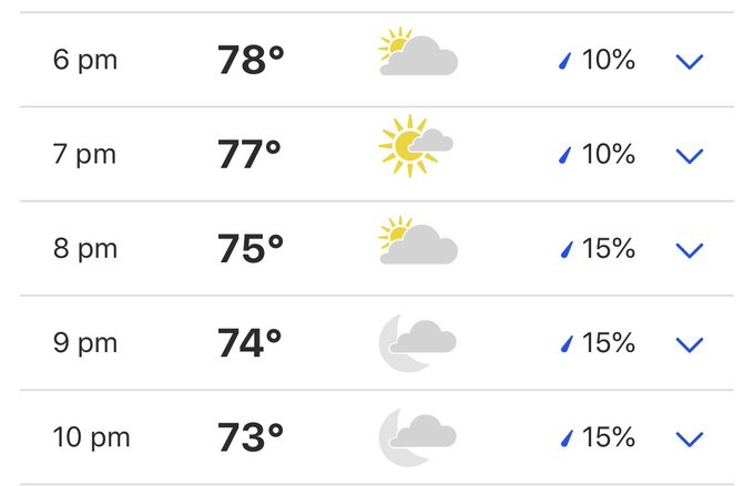 Here’s the weather forecast for Portsmouth, New Hampshire for tomorrow evening. [The Trump rally was scheduled for 8 p.m.]