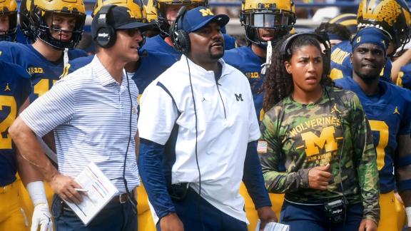 Whoa, what a cute girl on the Michigan sidelines.